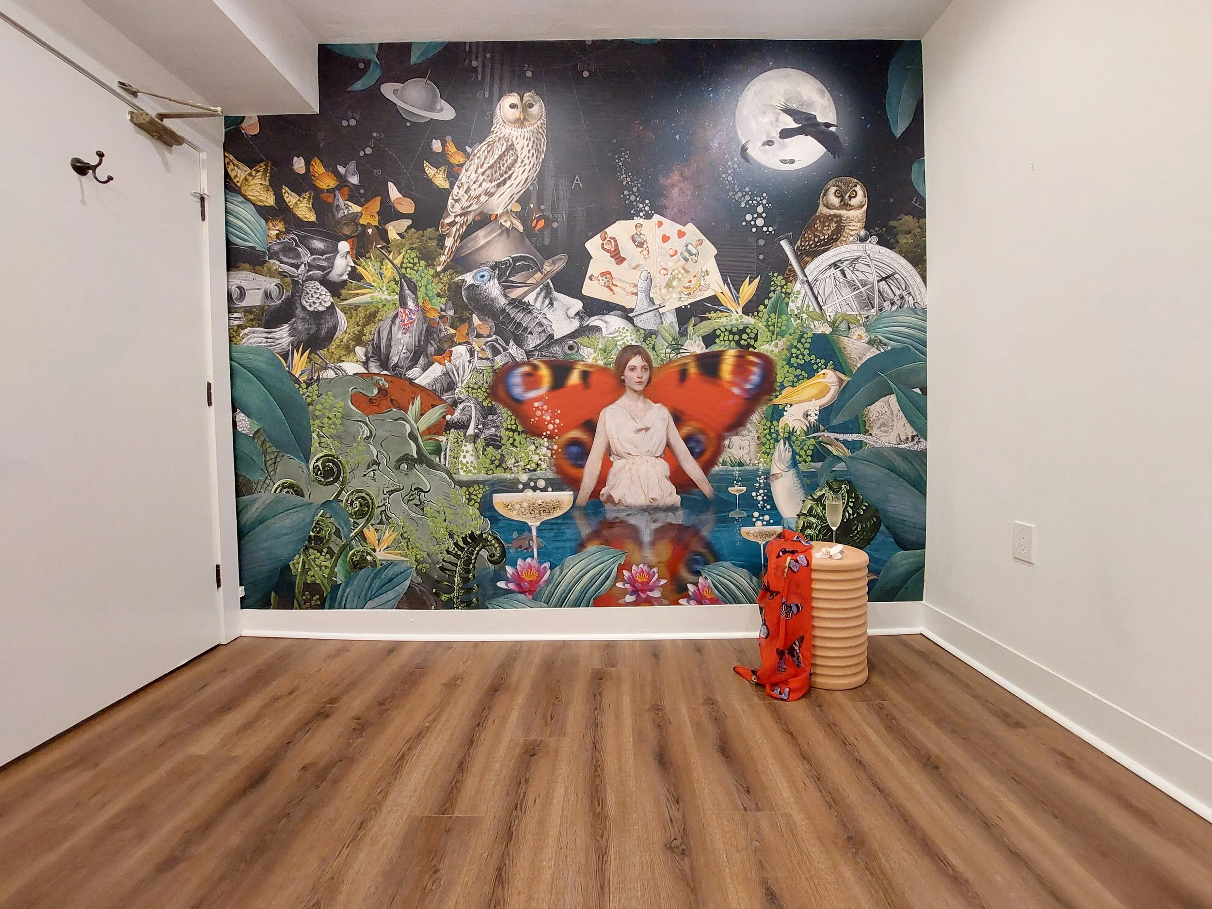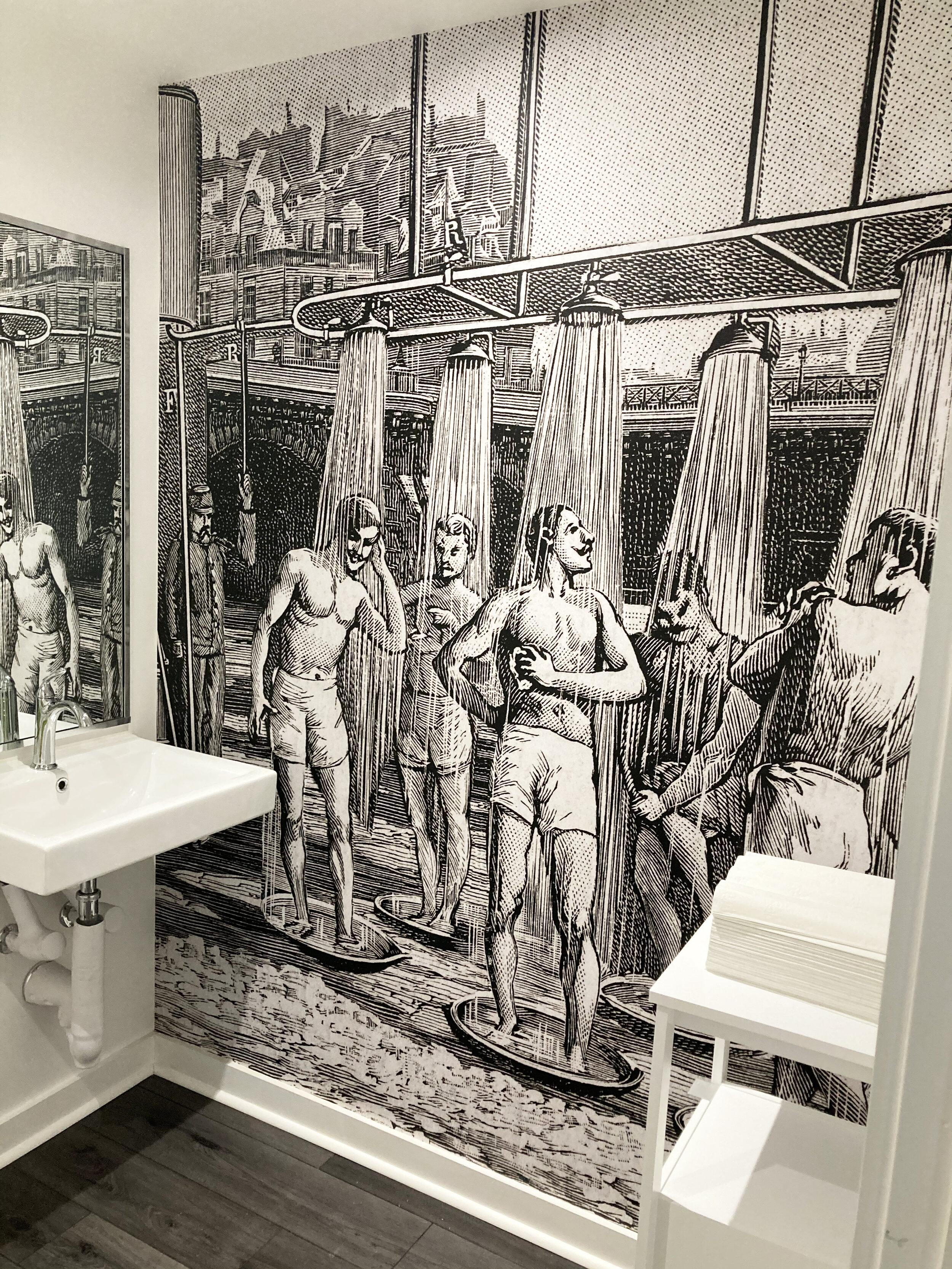 SAINTETÉ MURAL - A 74'“x92” wall mural commissioned for the New Orleans production company Fire on the Bayou (firenola.com). Moving into a new vibrant video and music production space they wanted to liven up the communal bathroom. Nothing like a bunch on showering semi-nude Frenchmen on an icy Seine river to do that. Based on my original collage SAINTETÉ the mural was adapted to fit the bathroom wall space.